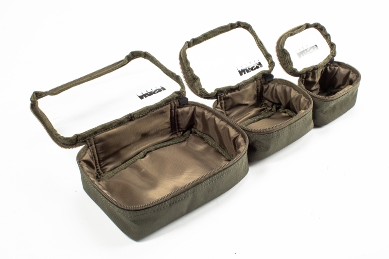 Include tre contenitori impermeabili con chiusura lampo e coperchi trasparenti che consentono di organizzare in breve tempo e trovare rapidamente gli oggetti di cui si ha bisogno, da bobine, spod e sacchetti PVA ad altri piccoli oggetti.