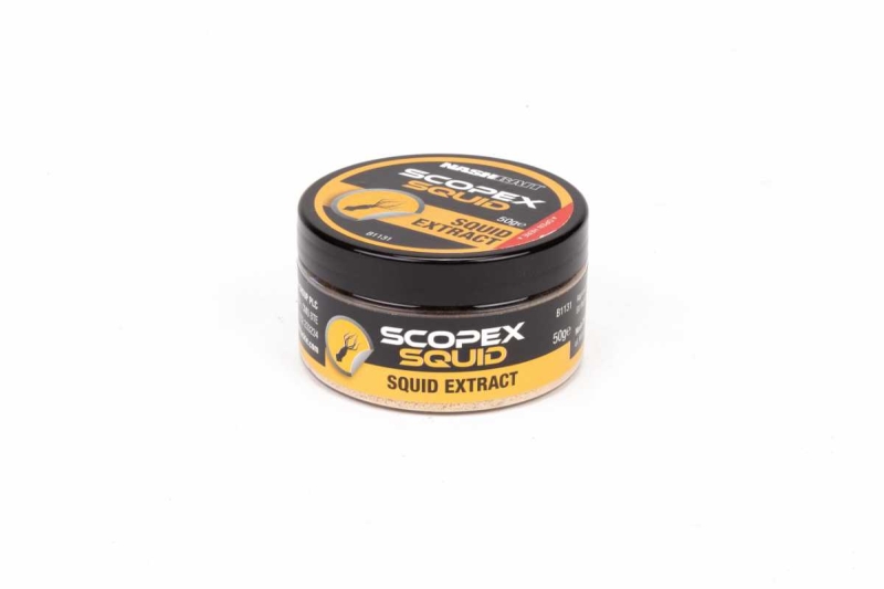 L'intramontabile esaltatore di appetito, famoso in tutto il mondo da oltre 30 anni e presente nei mix Nashbait. Molto concentrato, altamente complesso, lo Squid Extract è facile sovradosarlo. Dosi consigliate: 8-20 grammi per kg di base mix, 4-8 grammi nelle pasture pellet o spod mix e 1-2 grammi sopra ad una pinta di bigattini o vermi.